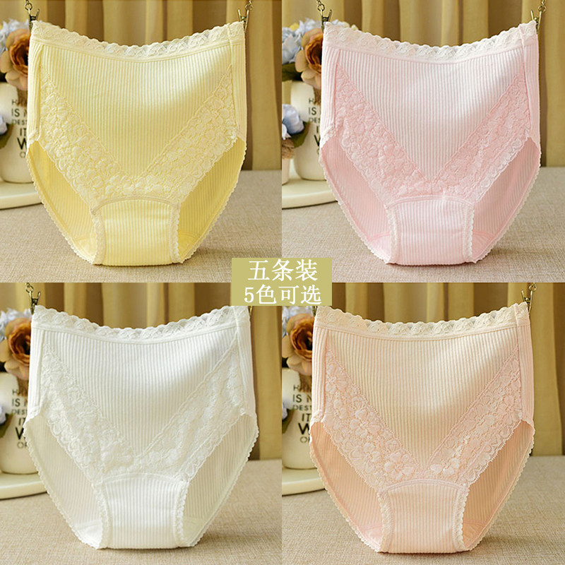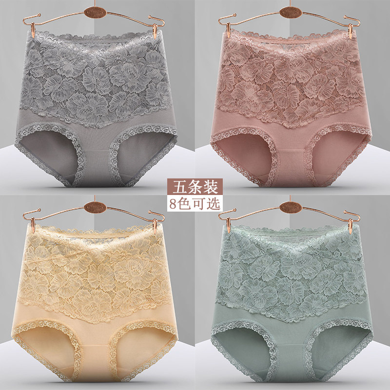 妈妈款高腰内裤女性感蕾丝舒适高弹螺纹全包臀中老年加大码三角裤