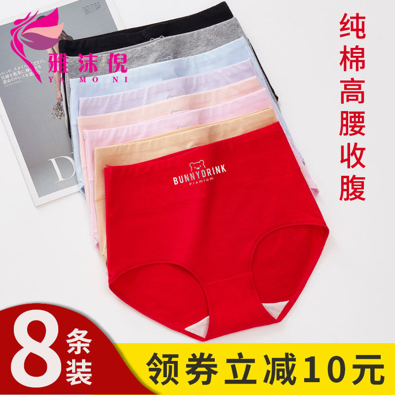 三条装中年妈妈款纯棉内裤新款大码高腰护肚轻收腹美腰塑型三角裤
