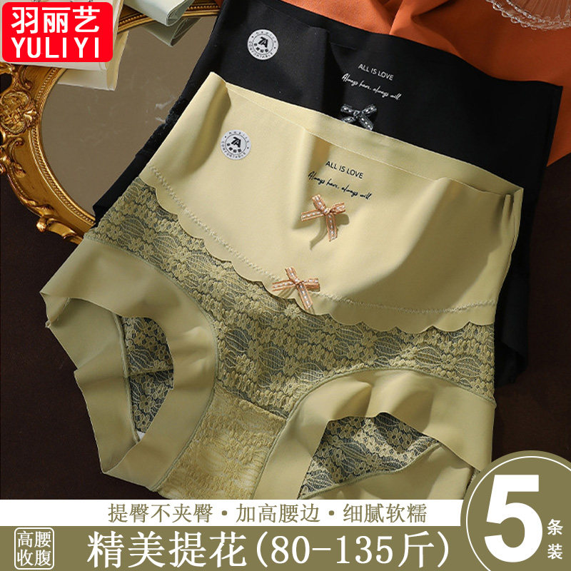 大码蕾丝内裤女性感薄款高腰收腹200斤胖mm新款加大无痕胖妹透明