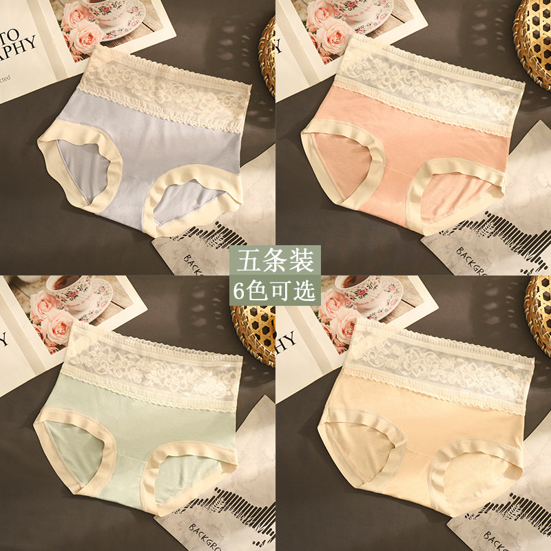 高腰大码双层底裆内裤女亲肤贴身提臀拼接撞色镂空蕾丝女士三角裤