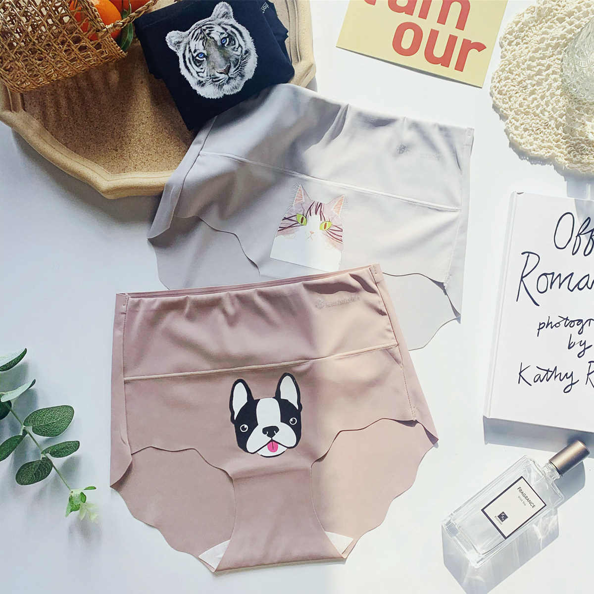 新款一片式冰丝无痕内裤女ins简约字母丝滑触感莫兰迪色系三角裤