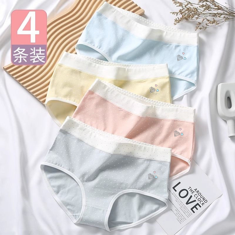日系简约中腰大码甜美纯色内裤女纯棉舒适亲肤无痕透气三角裤衩女