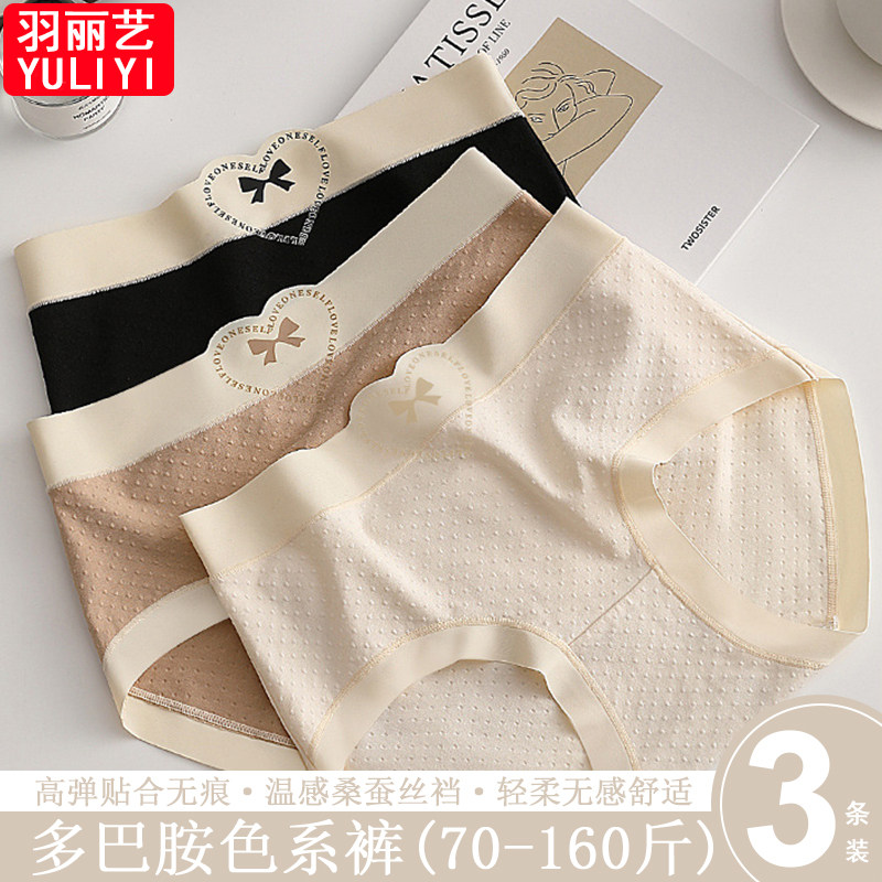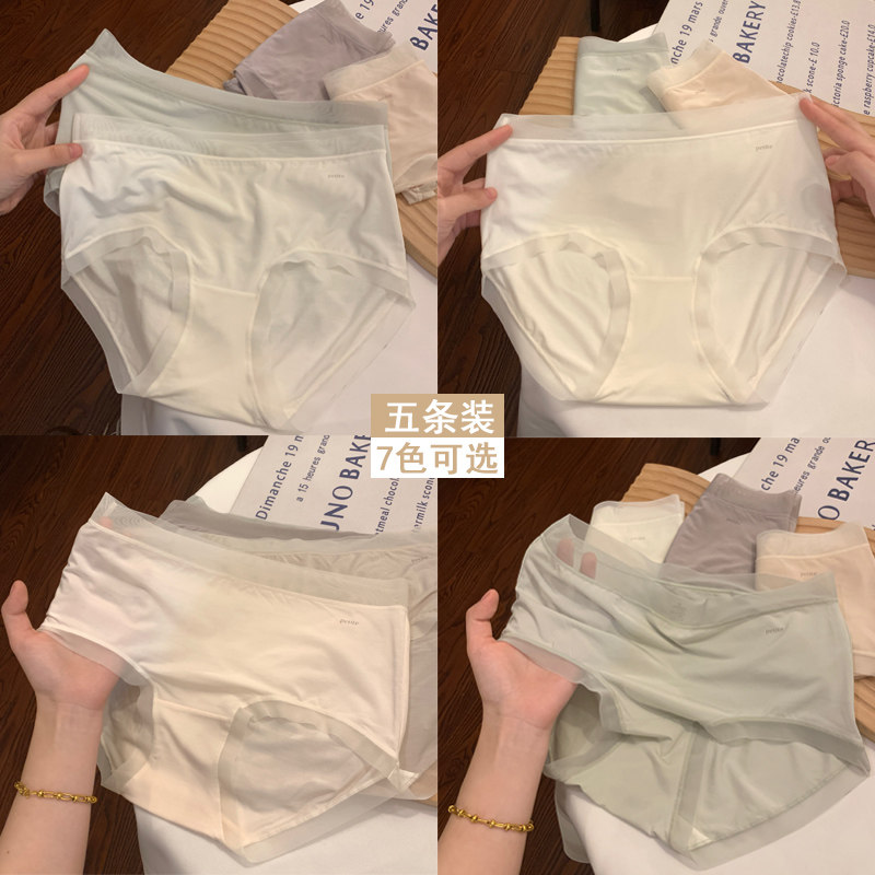 轻柔透气亲肤裸感中腰内裤女时尚无感贴合蚕丝藏红花裆女士三角裤
