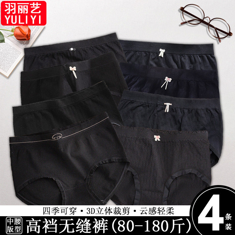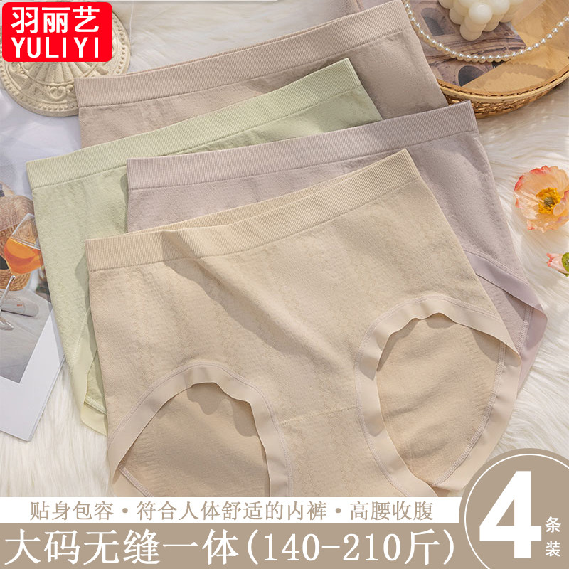 加大码胖mm210内裤女新款高腰无缝一体裸感亲肤贴身不夹臀三角裤