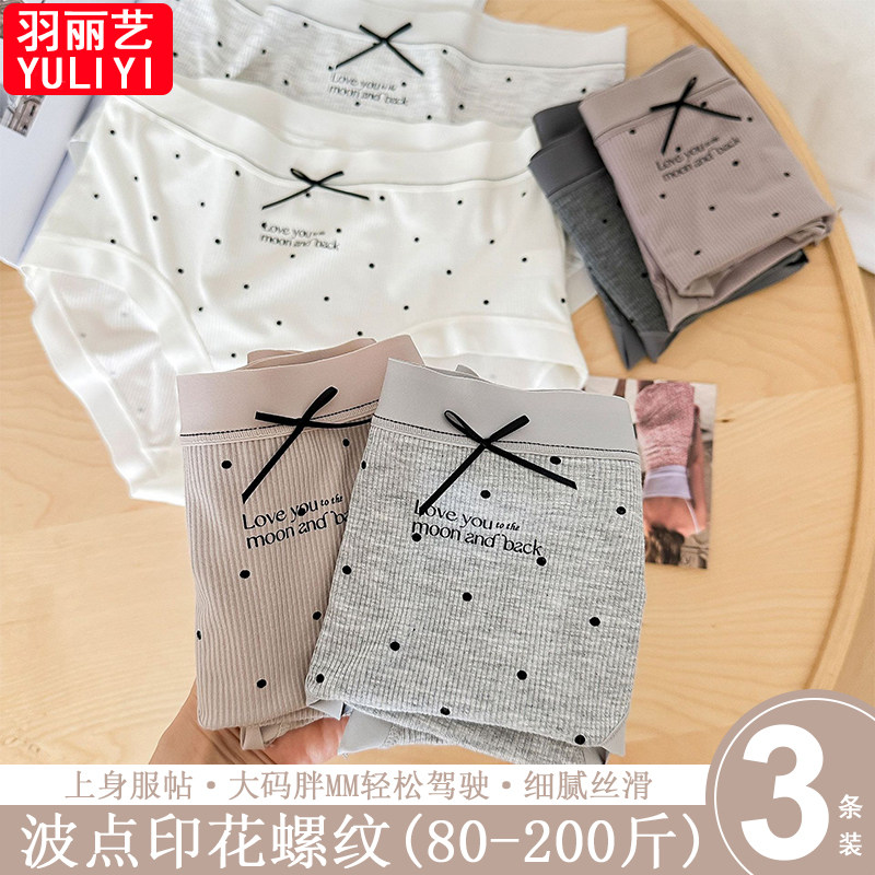 大码款胖mm波点印花内裤女纯欲风颜值质感螺纹蝴蝶结点缀三角裤