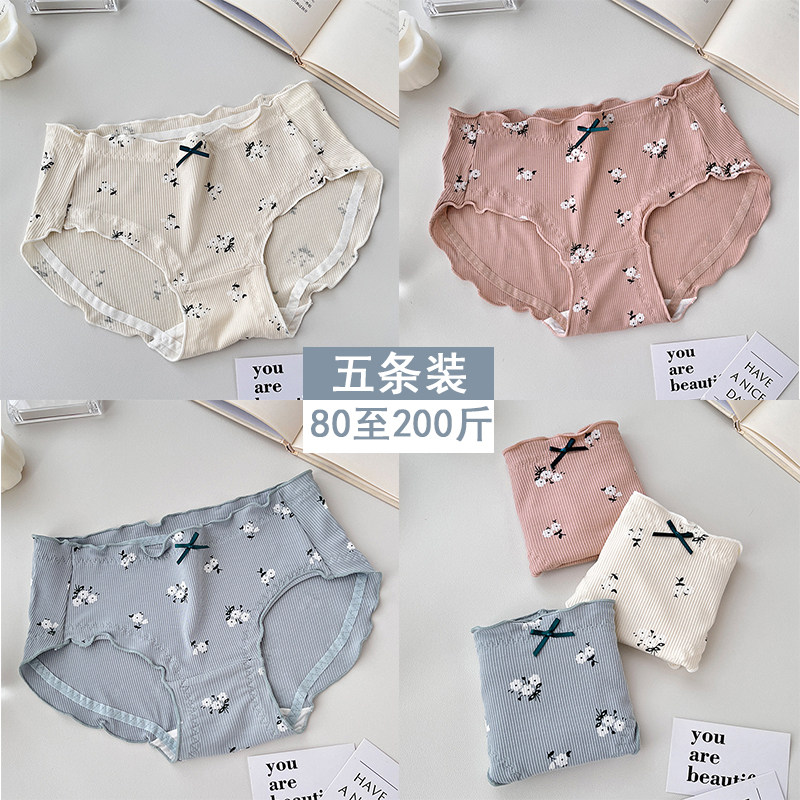 大码内裤女胖mm200斤高腰薄款软糯柔软不紧勒内裤女清新碎花