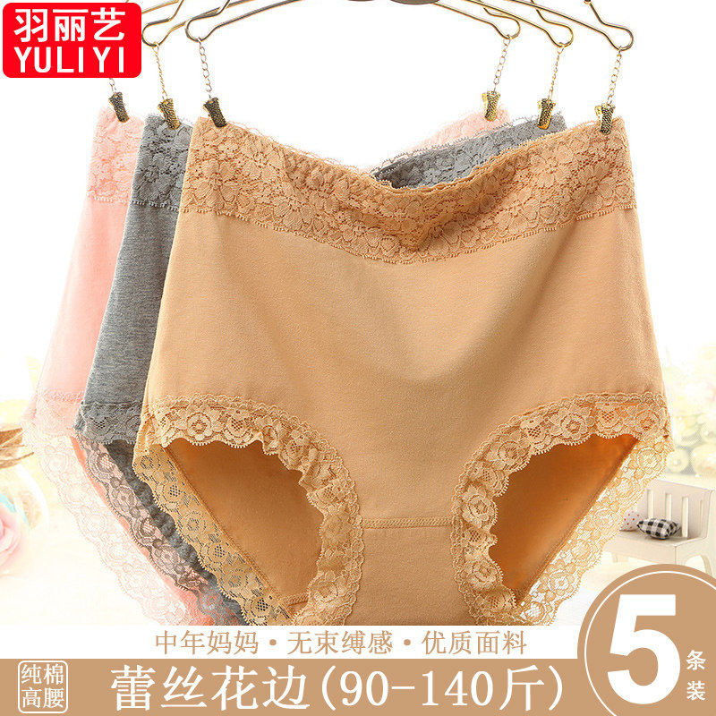 新款中年妈妈高腰内裤舒适纯棉提臀全包臀不勒蕾丝花边女士三角裤