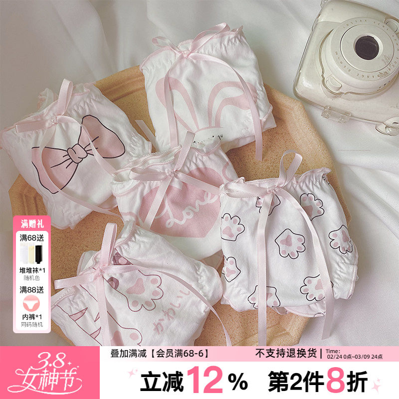 5条日系少女三角裤可爱软妹面包裤中低腰透气全棉学生纯棉裆内裤