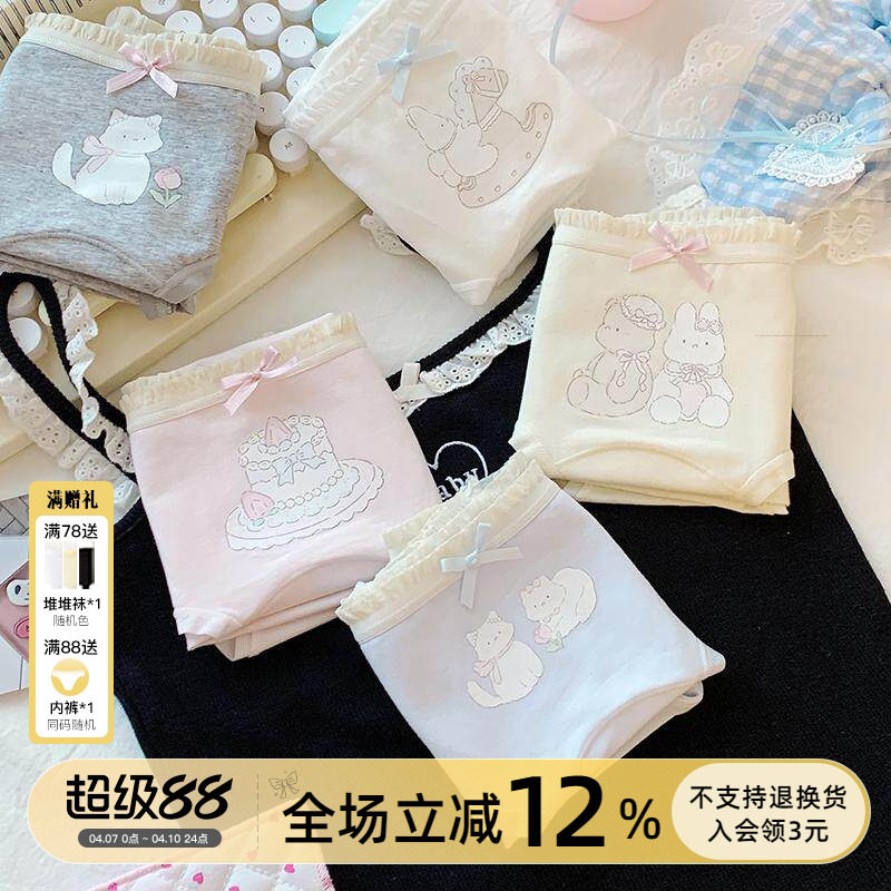 为慕莫代尔内裤女纯棉中高腰透气全棉底裆日系少女蕾丝边三角短裤