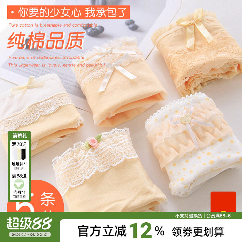 少女内裤女纯棉女士女孩大童中腰三角裤女生抗菌全棉初中学生短裤