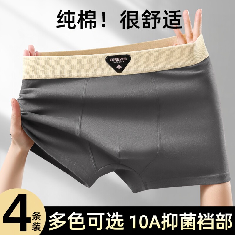 猫人男士内裤无痕纯棉提花石墨烯抗菌平角男性感运动透气四角短裤