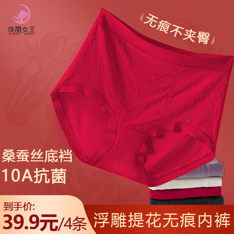 焕丽女王新中式内裤女无痕中高腰加长桑蚕丝底裆全包臀三角女士