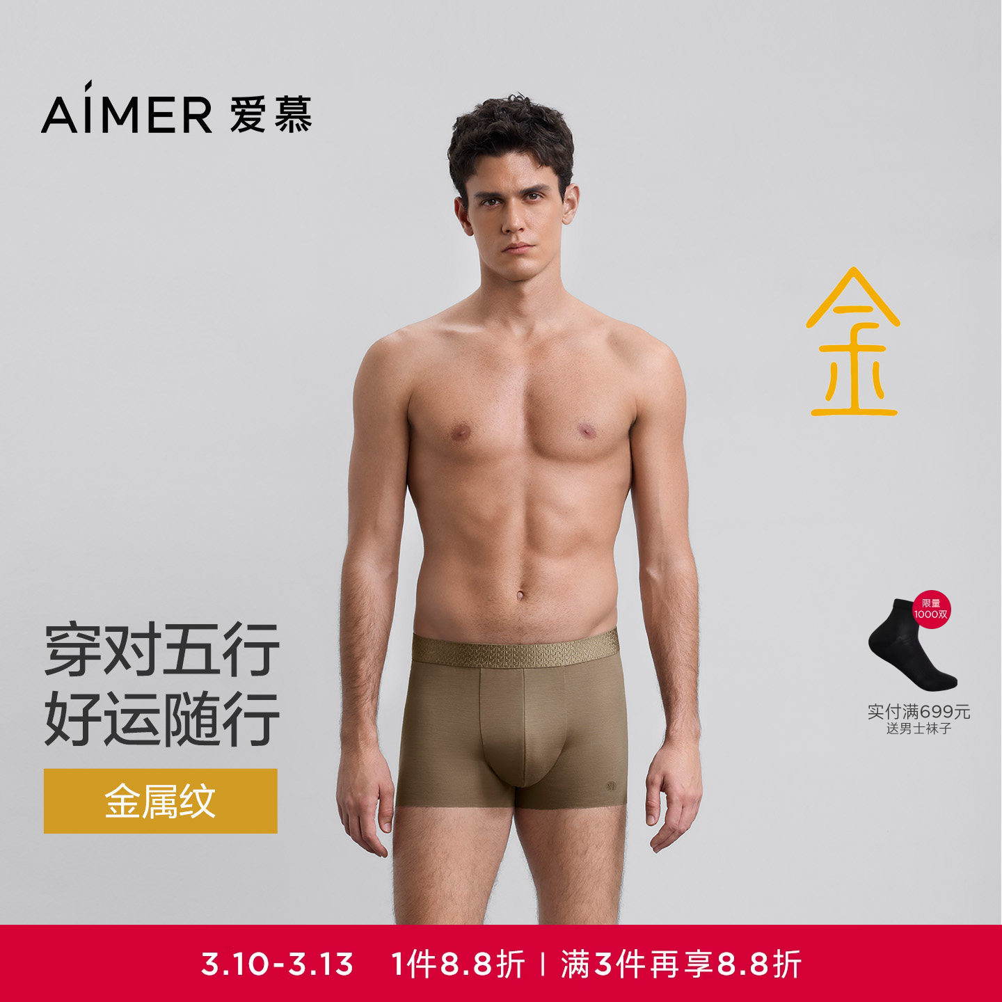 【开运系列】爱慕先生五行开运裤男士内裤装腰平角裤25春夏