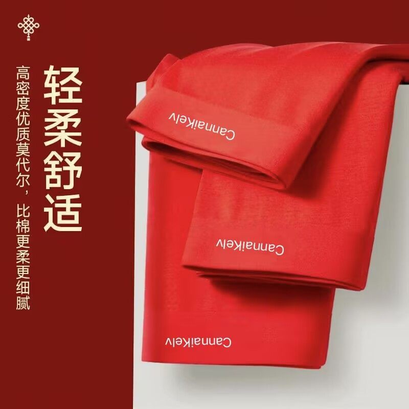 四季本命年男士纯棉冰丝中国红内裤男莫代尔棉平角四角裤头男结婚