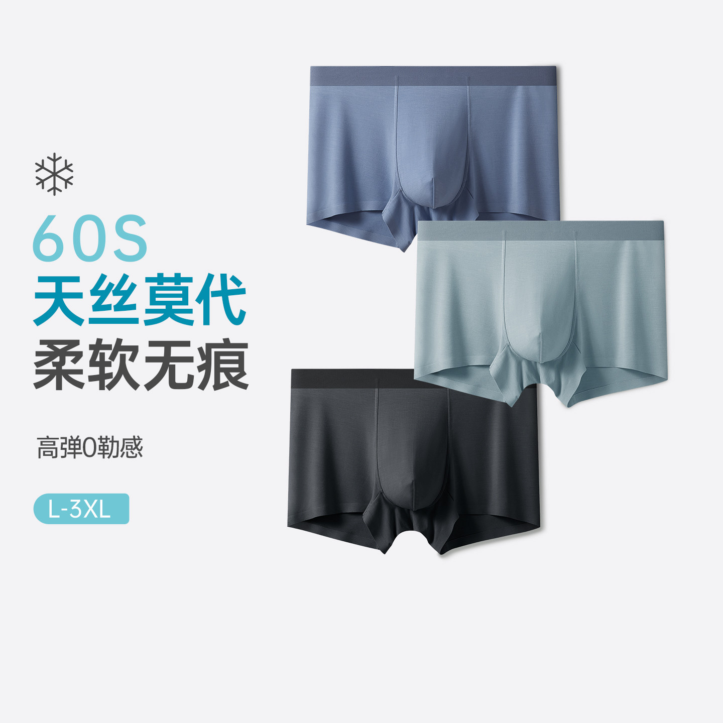 魅丽翘精品3条盒装无痕莫代尔男士平角内裤抗菌纯棉裆四角短裤头