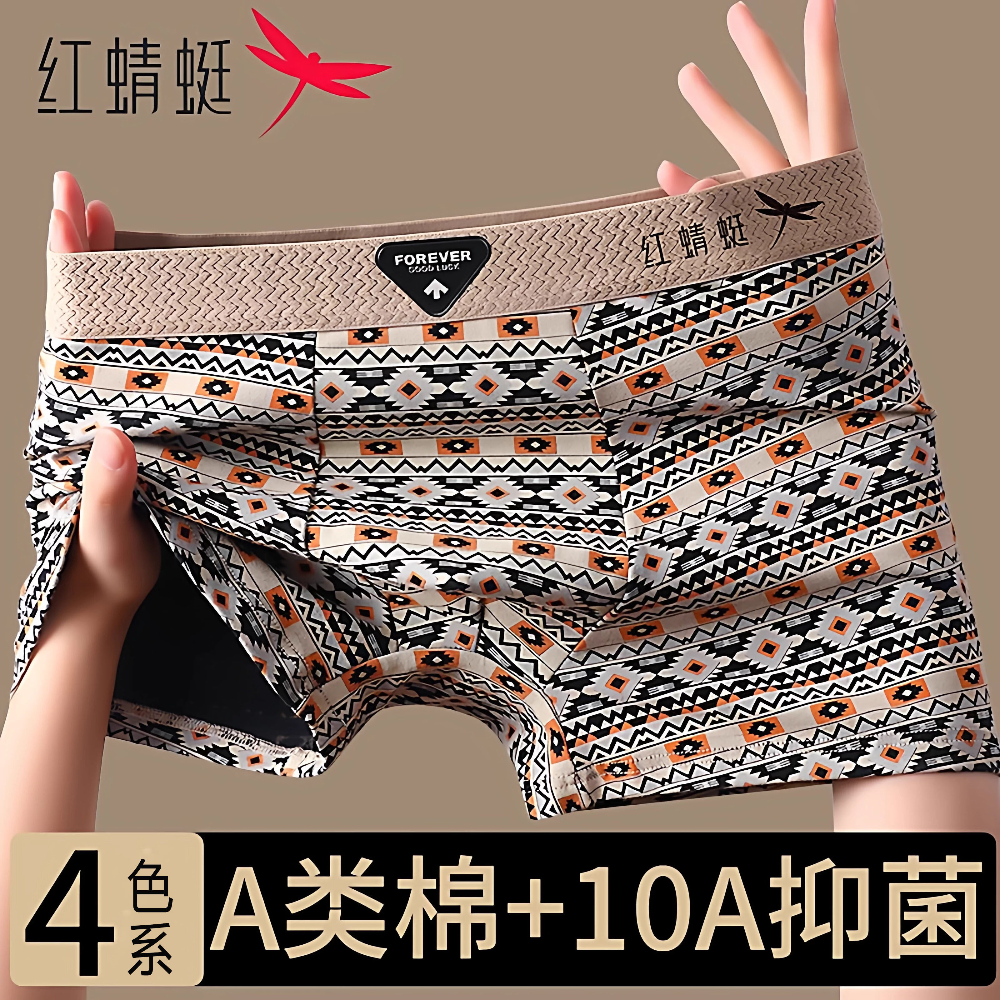 红蜻蜓纯棉男士内裤男款10A级抗菌四角短裤新款运动透气平角裤头