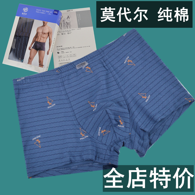 特价清仓普利诗内裤男正品纯棉植物中腰平角抑菌舒适宽松33241