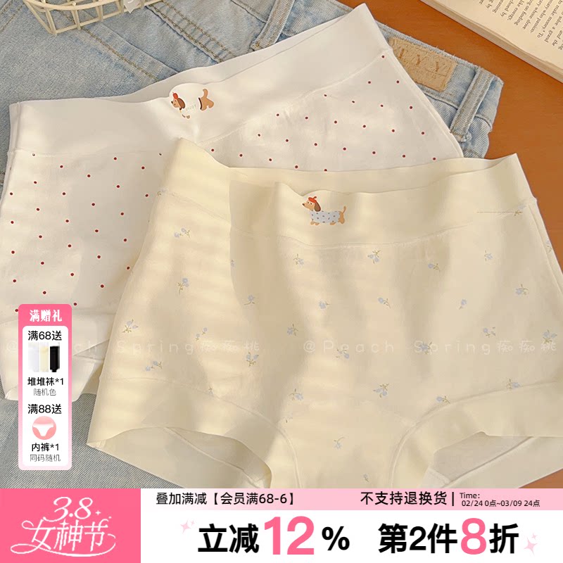 蝶安芬女士内裤印花可爱少女纯棉中腰女生夏季薄款高中生学生短裤