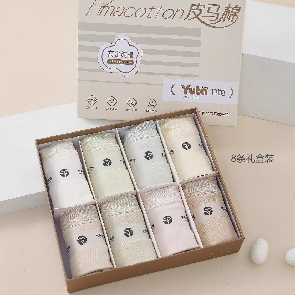 羽她高定匹马棉内裤女中高腰全包臀四季款丝柔纯色三角内裤礼盒