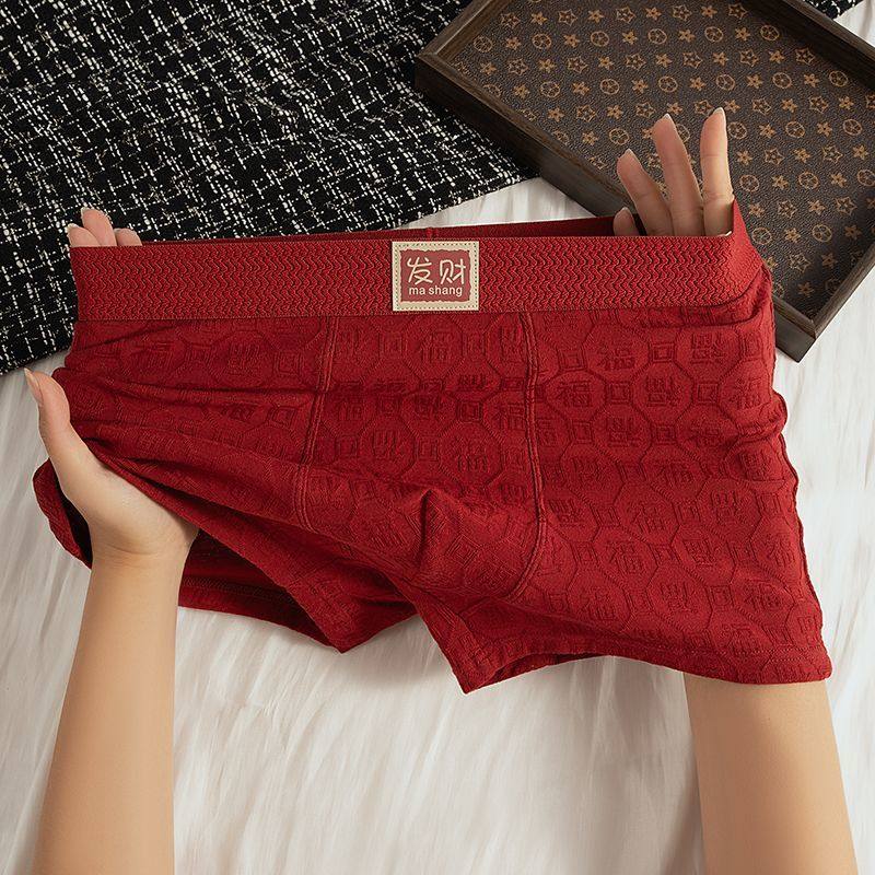 本命年纯棉男士红色内裤透气舒适抑菌印花四角喜庆轻奢平角短裤男