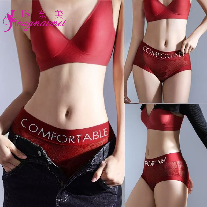法式蕾丝女士内裤性感无痕桑蚕丝抗菌加长裆中腰字母裸感网纱短裤