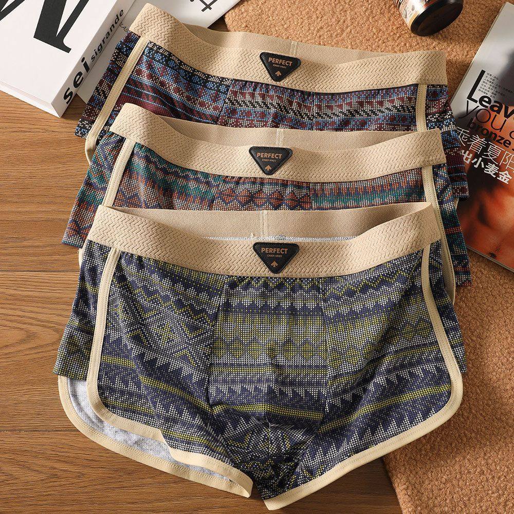 民族风男士内裤纯棉透气印花四角裤舒适男款复古个性平角短裤新款