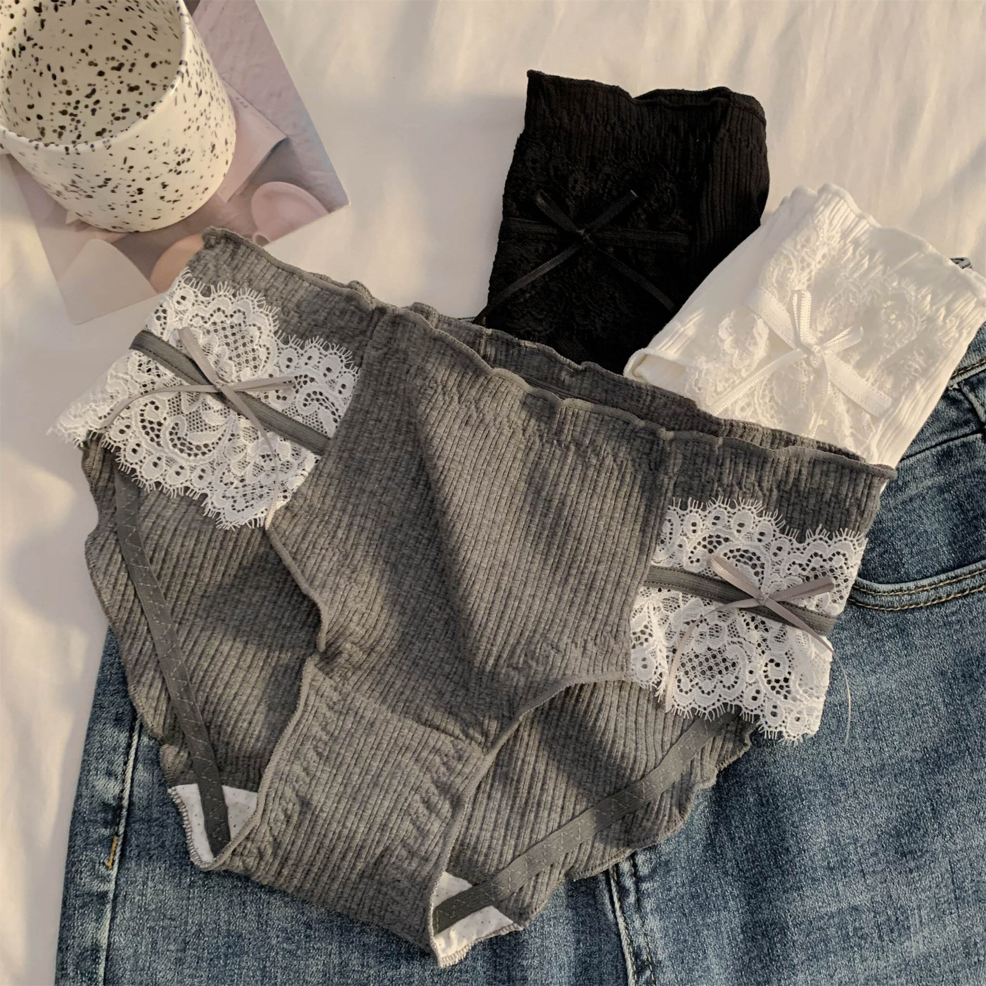 高货小众温柔纯欲高级感蕾丝内裤套装性感低腰三角裤