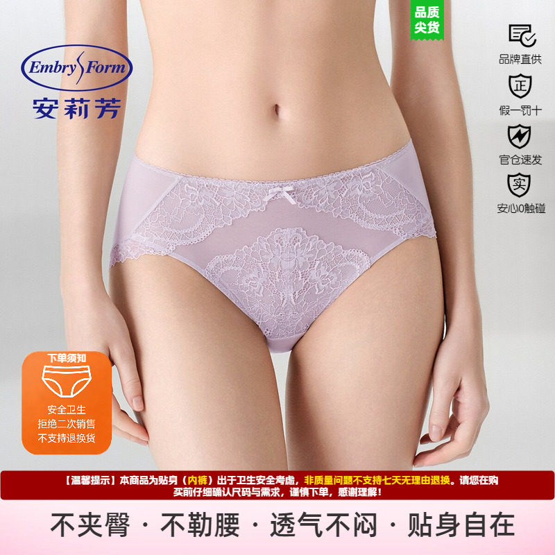 安莉芳内裤女蕾丝花边三角性感中腰舒适纯色优雅亲肤透气E201172