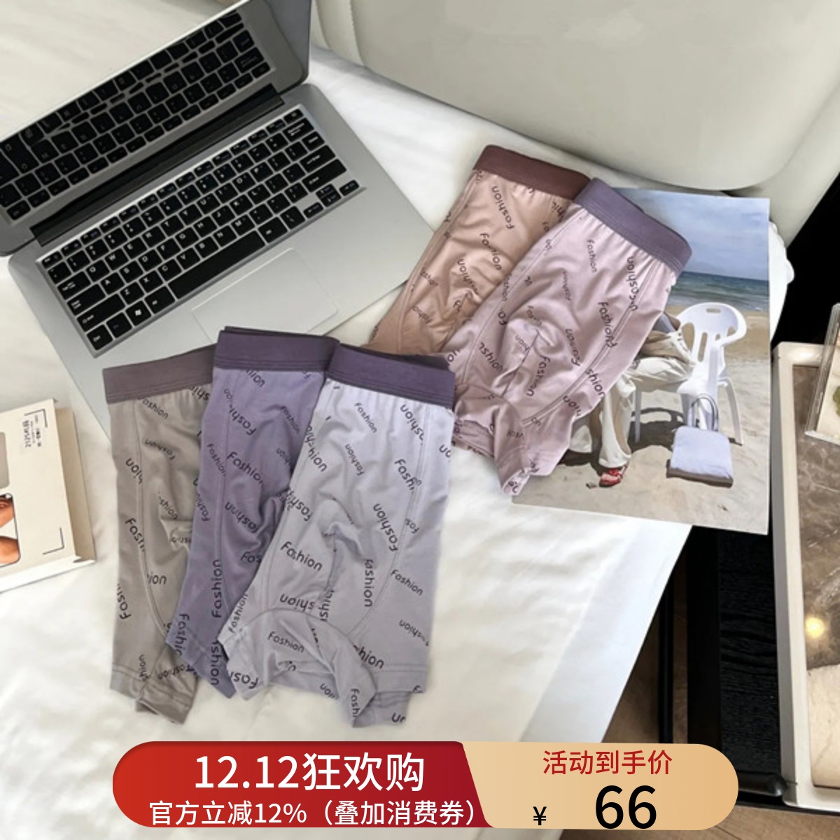 买2送1条男士四角内裤冰丝透明透气平角性感低腰冰丝无痕丝滑内裤