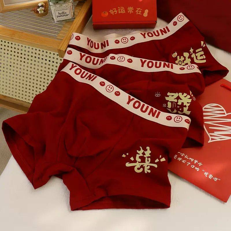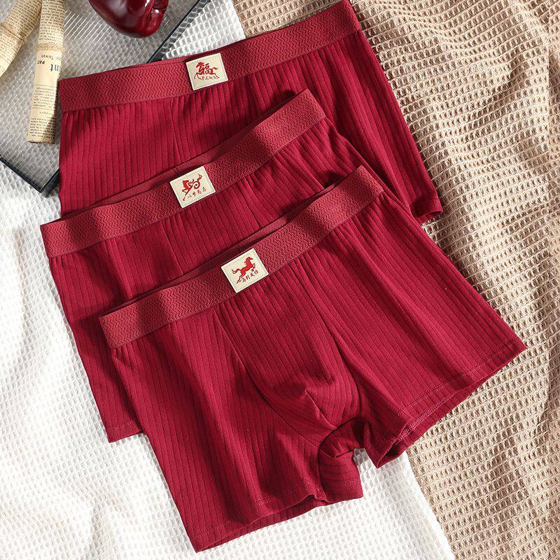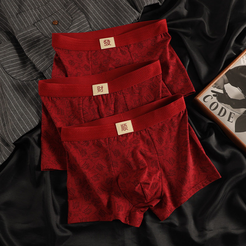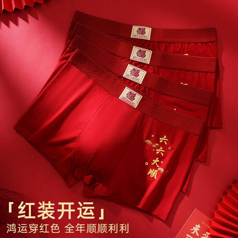 蝶安芬女士内裤大红色全棉性感网纱透明结婚大红四条装三角短裤女