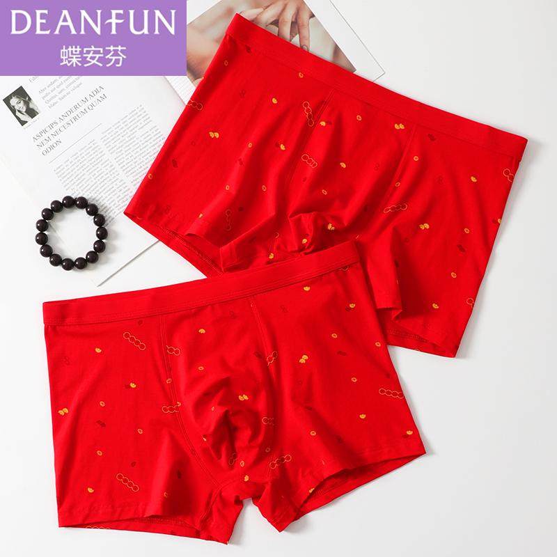 蝶安芬男士本命年大红色内裤纯棉中腰平角过年婚庆舒适四角短裤头