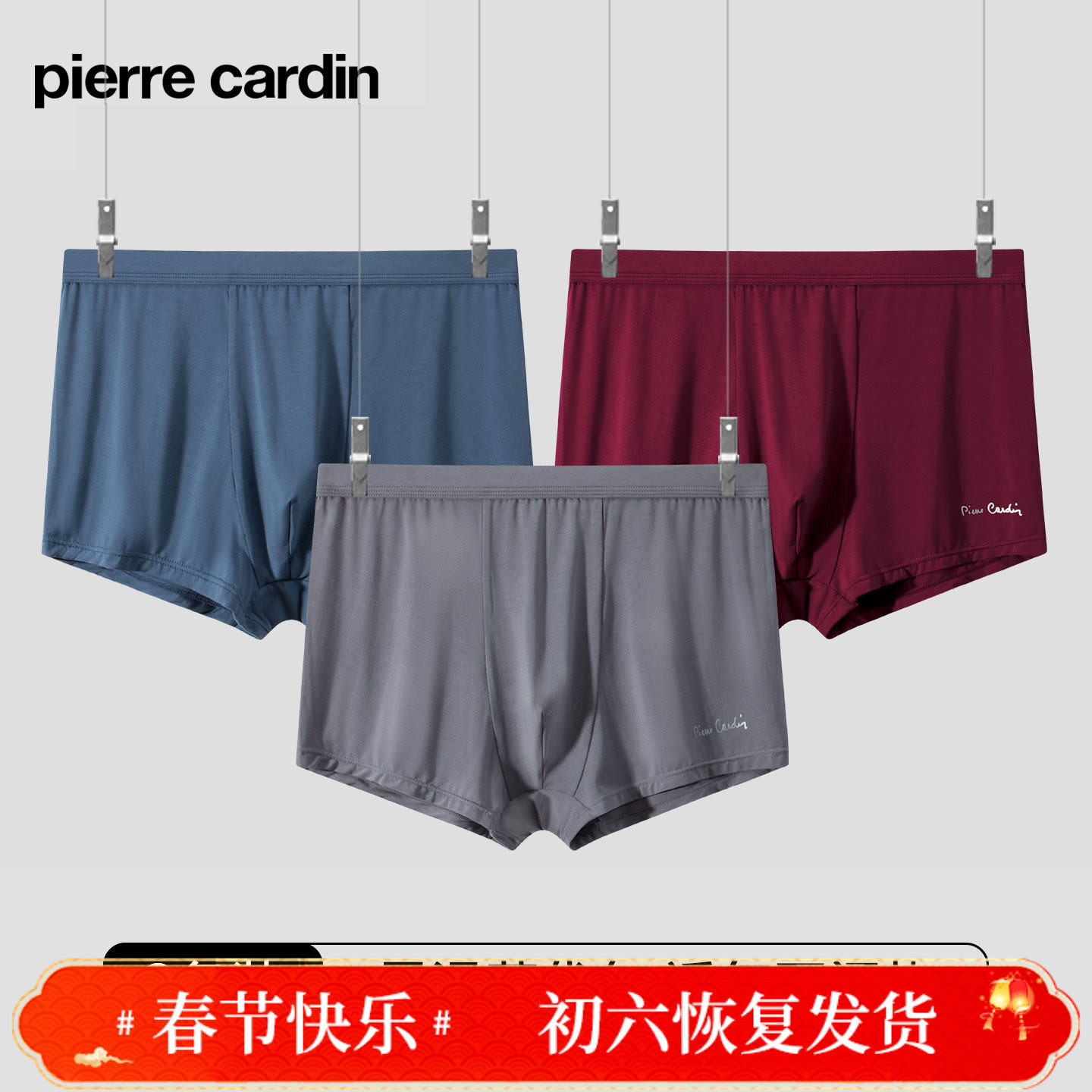 2条装皮尔卡丹内裤男士夏季薄款透气柔软莫代尔中腰修身平角裤衩