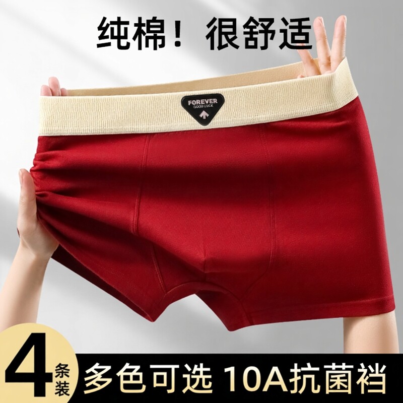 男士内裤经典红色本命年喜庆四角时尚高档纯棉透气亲肤平角短裤男