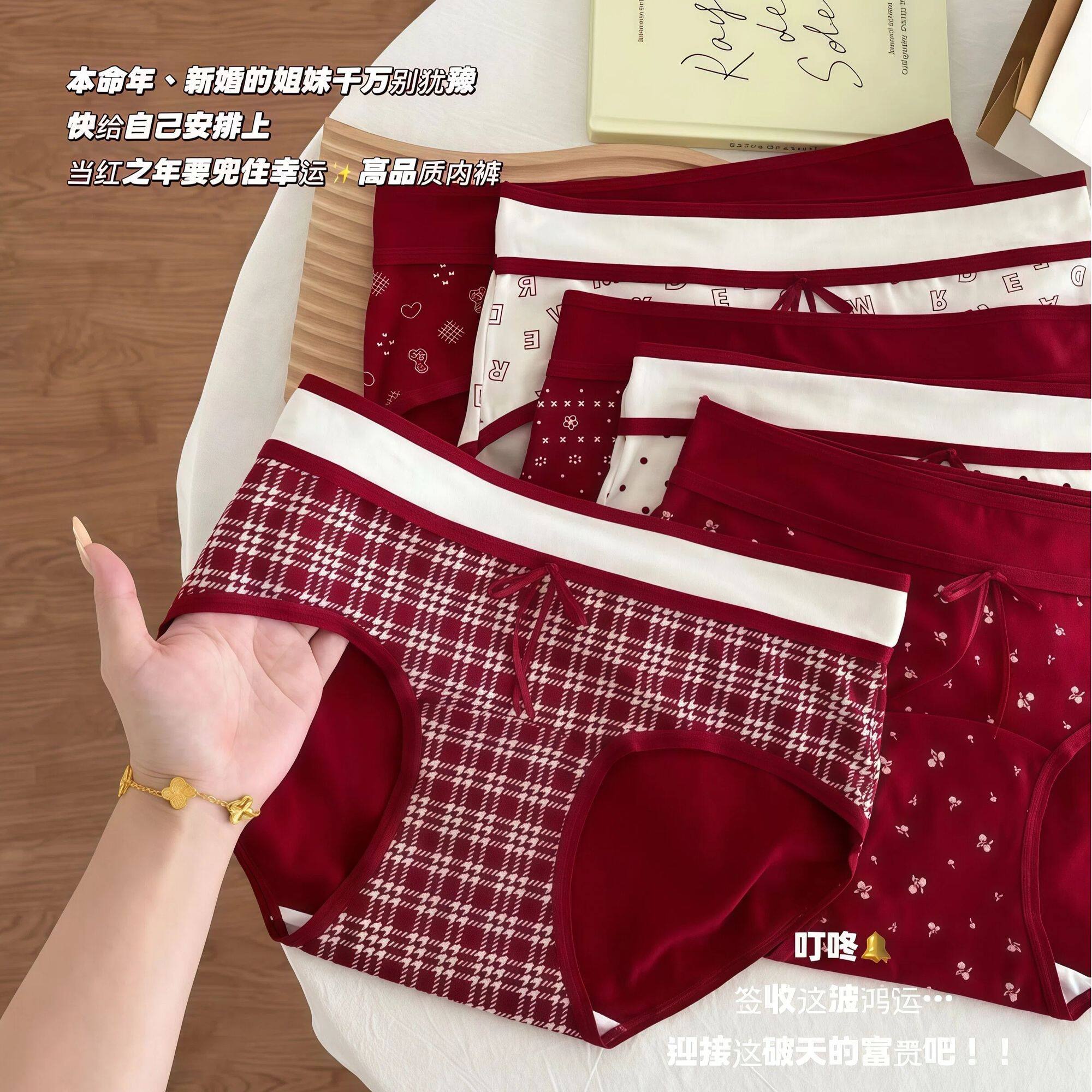 本命年红色内裤女高腰透气大码胖mm中老年妈妈蛇年收腹纯棉三角裤