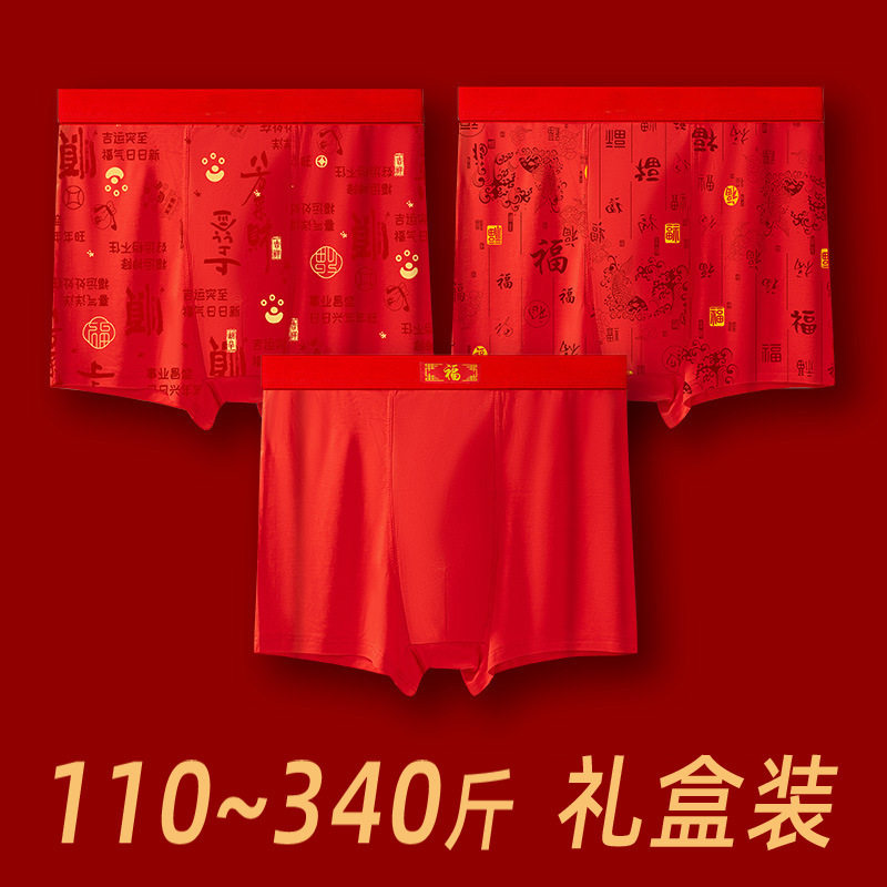 2026马年本命年内裤男士红色平角纯棉结婚大码四角裤头男生套装