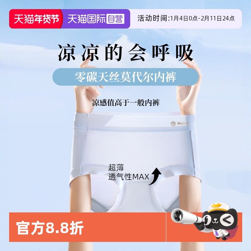 【自营】MEINS莫代尔内裤女无痕舒适抗菌大码中高腰女生夏季薄款