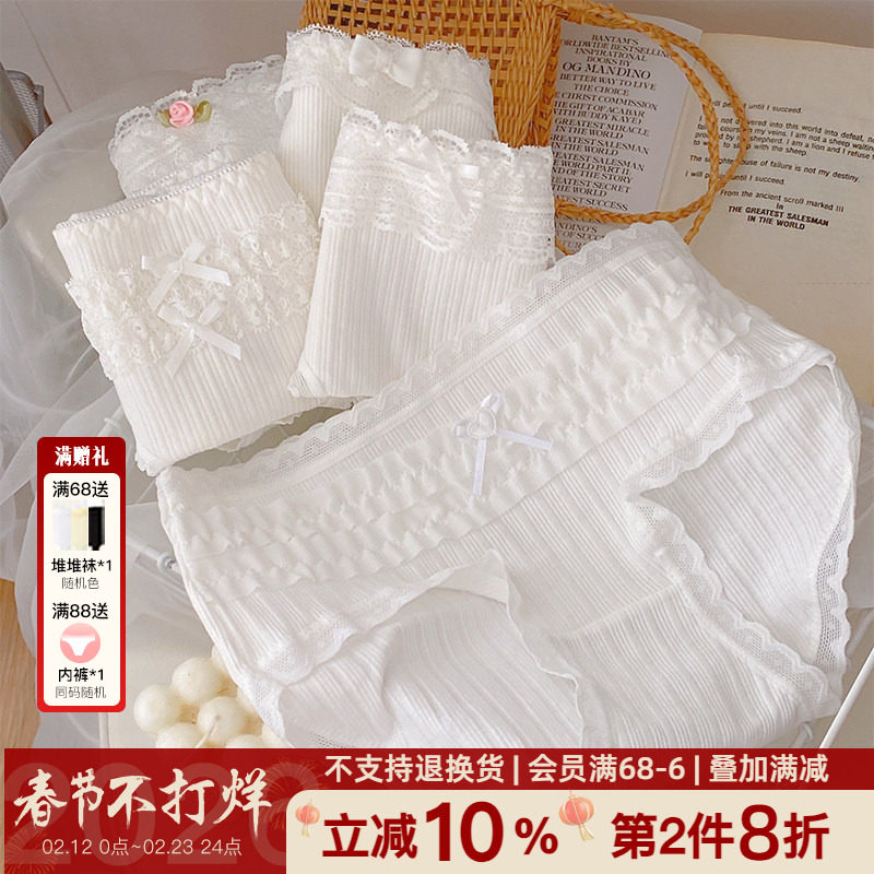 冷酷熊熊!原创少女可爱白色内裤纯棉学生秋季薄款透气全棉裆抗菌