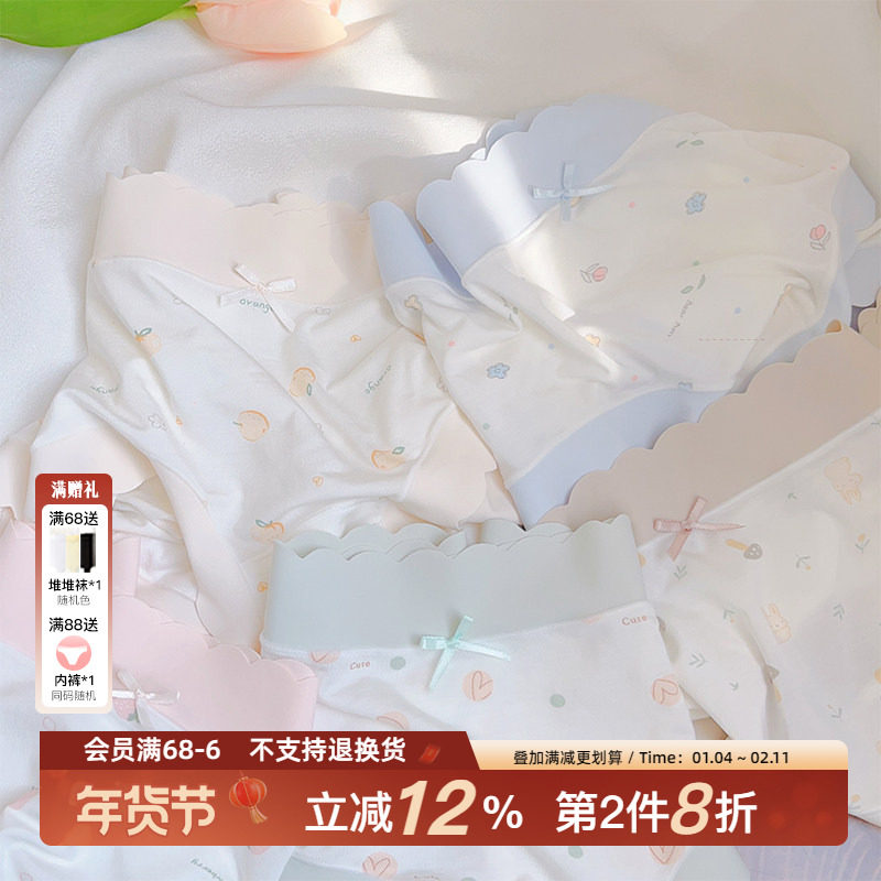 新款情侣内裤一男一女性感透气纯棉男生内裤女大码三角裤撞色提花