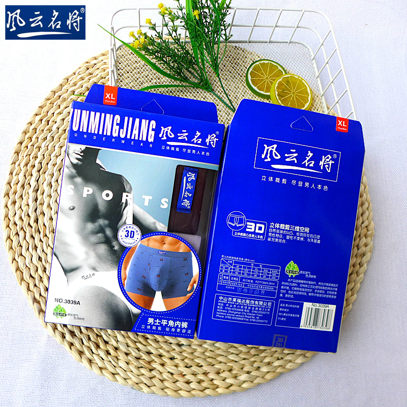 2条装男士内裤平角裤低腰纯棉U凸透气潮流印花青年四角短裤头包邮