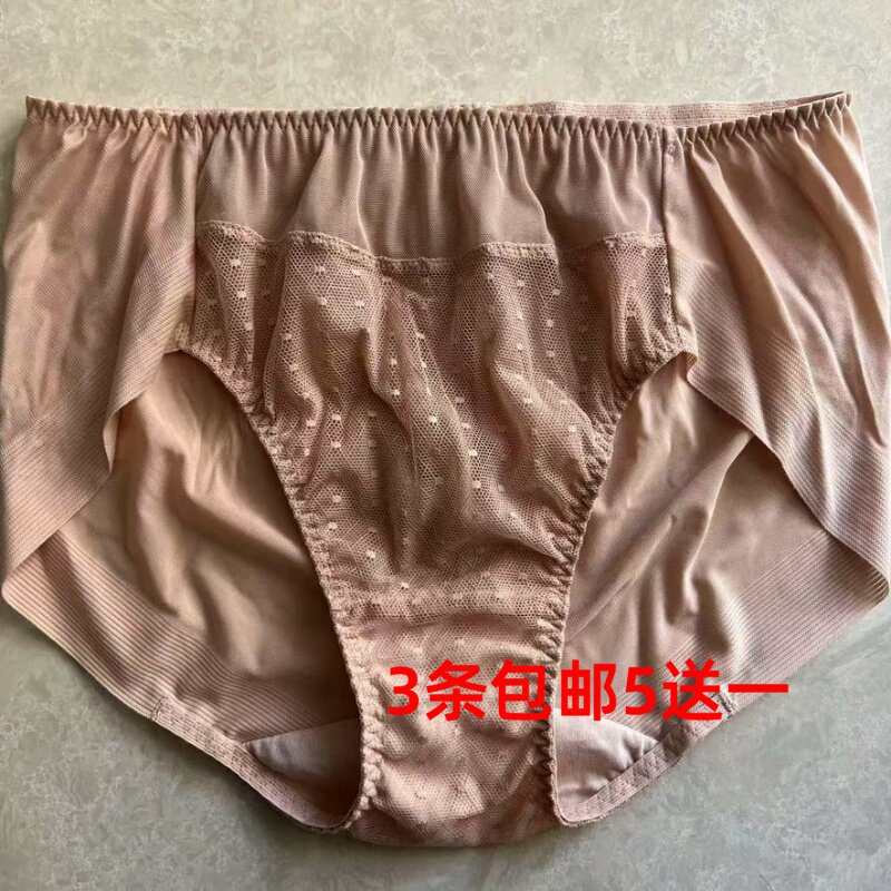 日系性感全蕾丝内裤女中高腰无痕包臀女士三角裤胖mm大码网纱透气