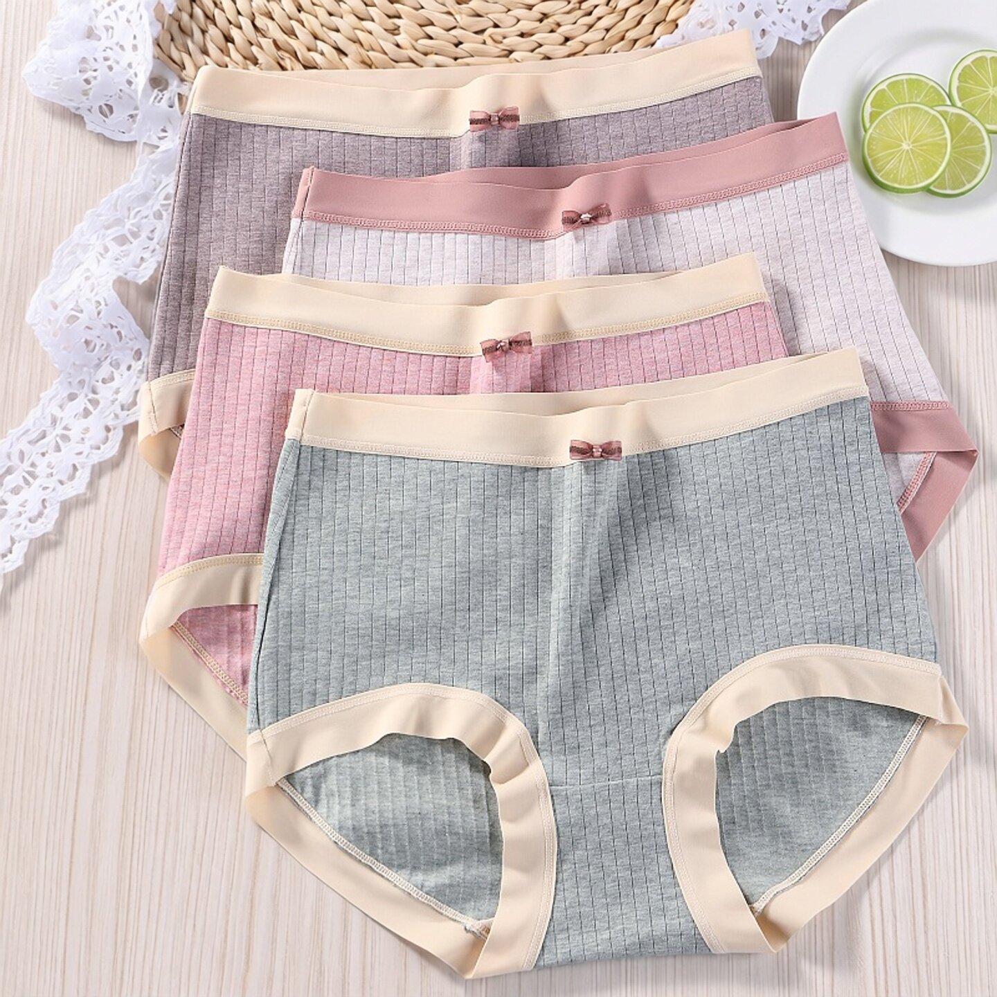 3条女士平角内裤纯棉中腰大码宽腰带收腹透气抑菌裆四季纯色运动