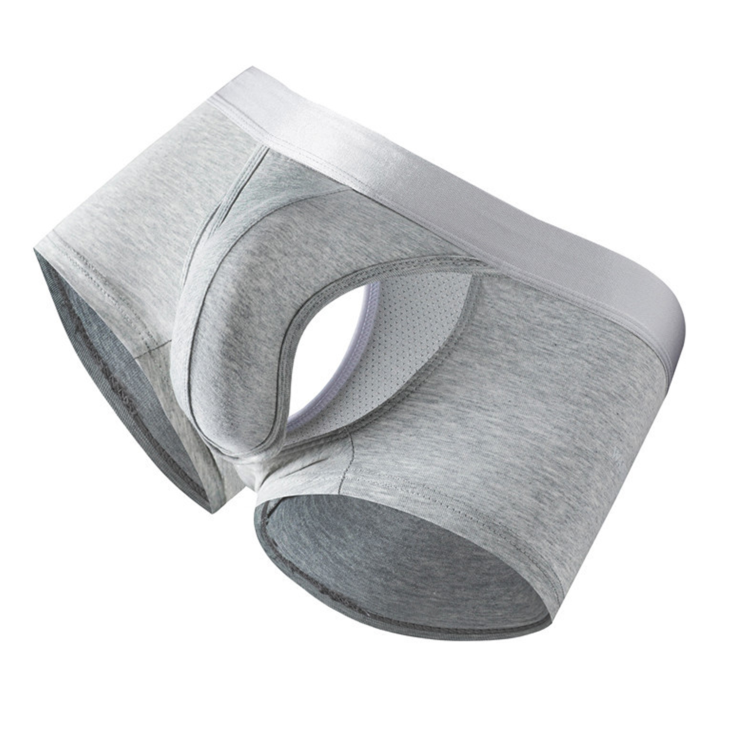 裆部侧边开口男士平角内裤纯棉太空舱分仓舒适四角透气轻薄短裤衩