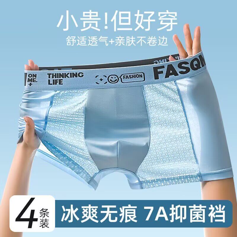 2/3条精装男士冰丝内裤男无痕一片式大码中腰透气舒适柔软四角裤