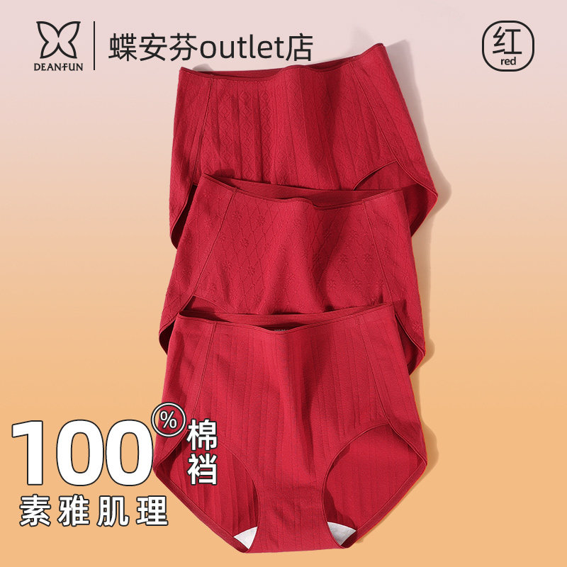 蝶安芬高腰收腹内裤100%纯棉全棉裆女士本命年酒红无痕大码三角裤