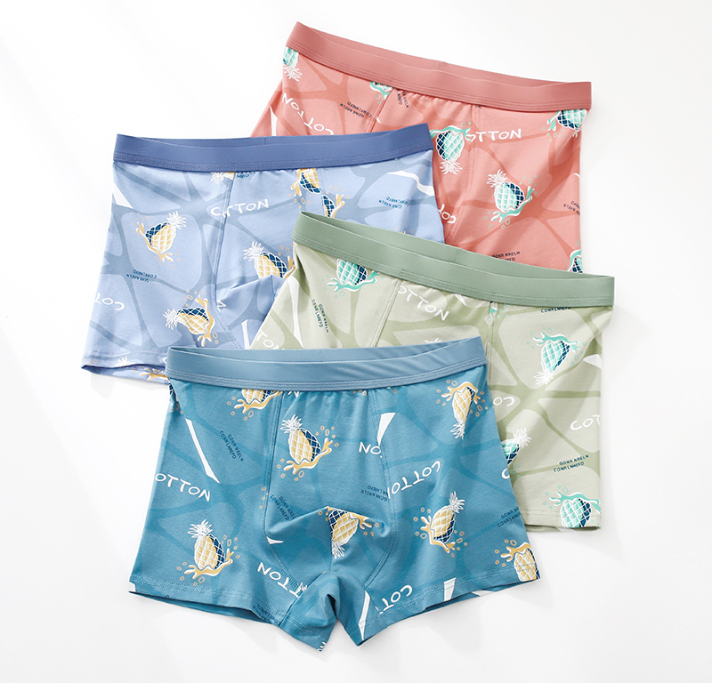 男士内裤纯棉透气男生平角裤潮流款中腰四角裤青年短裤头个性时尚
