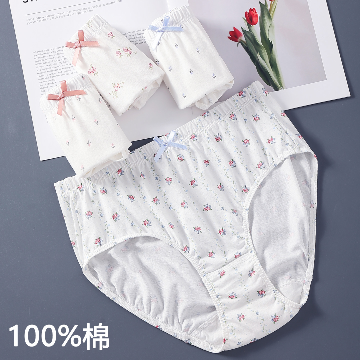 4条装 中腰内裤女土纯棉透气大码收腹女式mm纯色四季三角棉质裤头