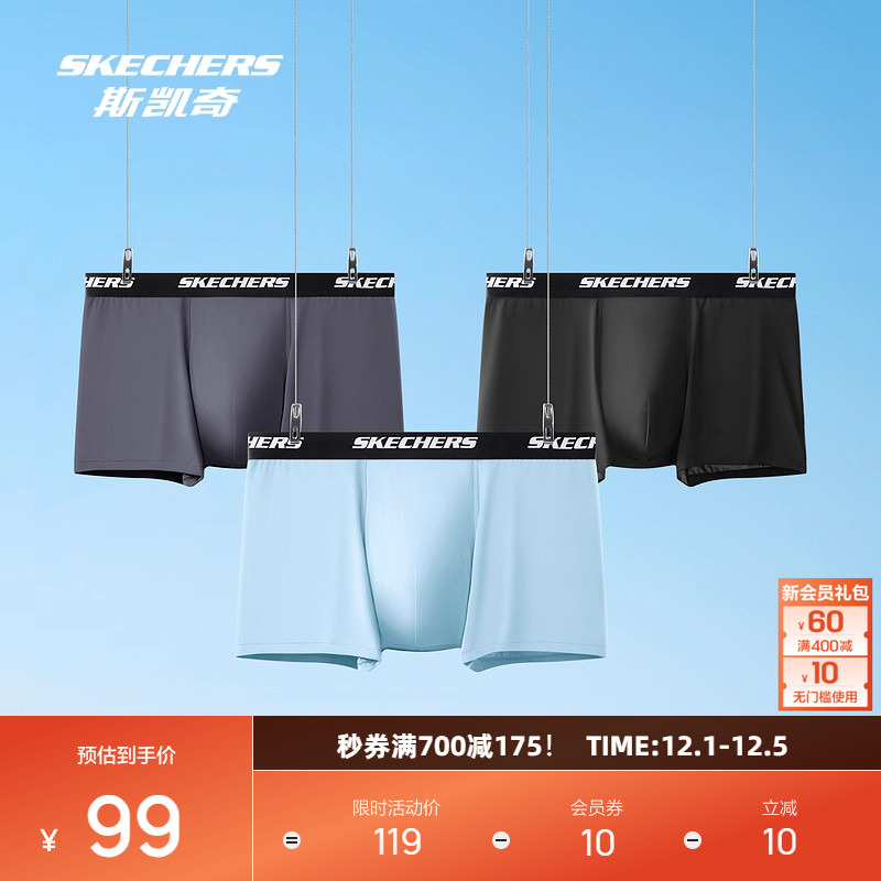 斯凯奇运动内裤2025秋男士冰丝中腰简约舒适休闲抑菌吸湿速干