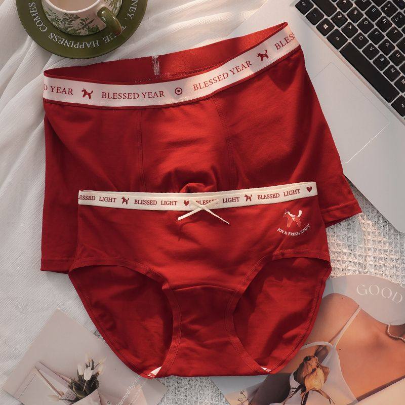 2条装红色情侣内裤结婚本命年一男一女大红内衣喜庆新婚纯棉套装