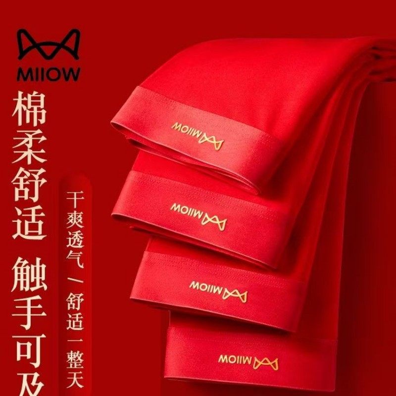 猫人冰丝本命年红内裤男无痕莫代尔平角四角本命年石墨烯纯棉短裤