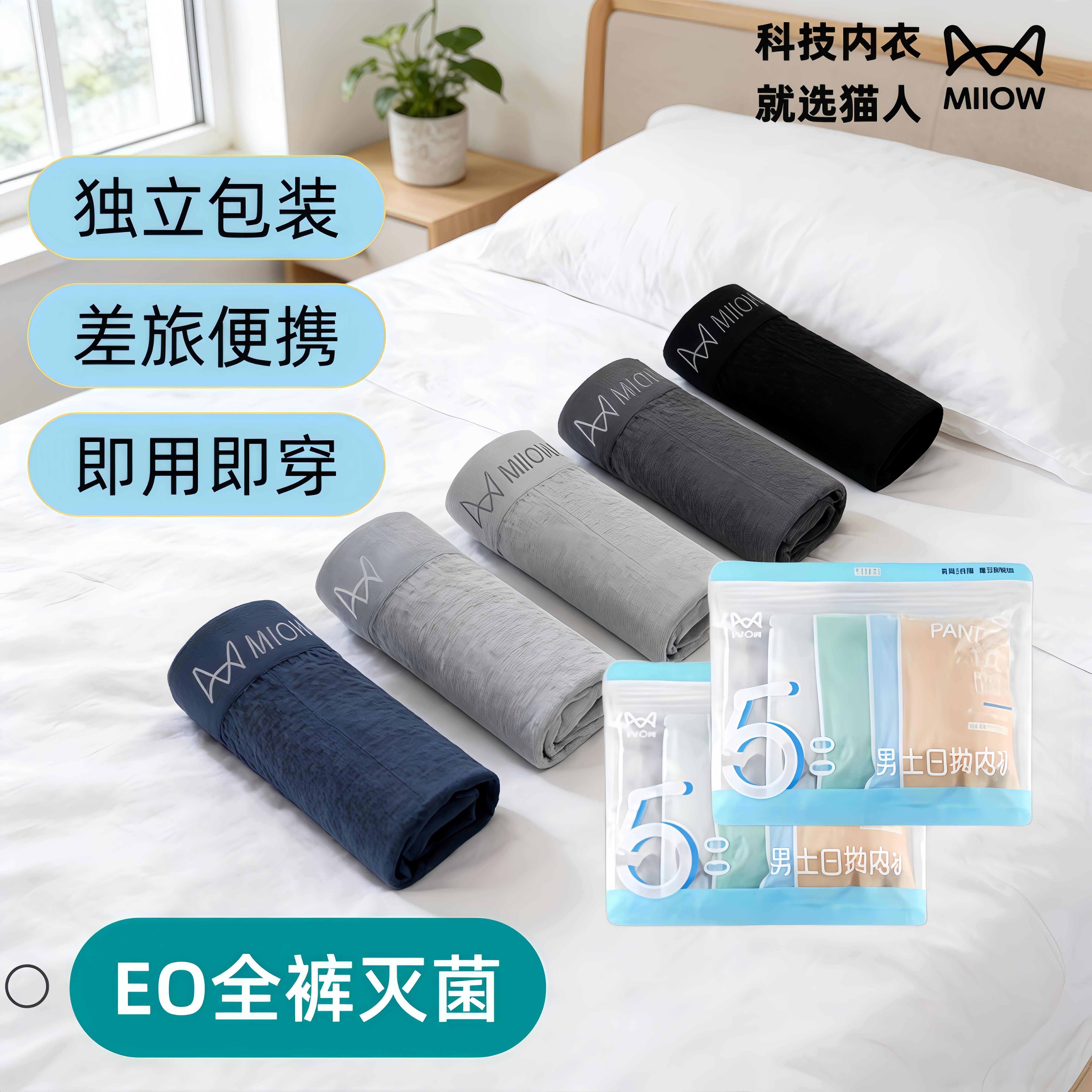 猫人男士一次性一体内裤灭菌日抛出差旅行便携短裤旅游免洗平角裤